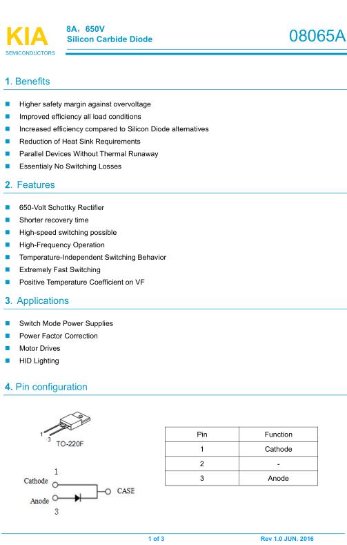 KSF08065A 8A/650V PDF資料及現(xiàn)貨供應(yīng)商-KIA MOS管
