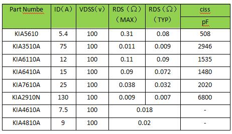 100V MOS管選型表對照大全及MOS管 場效應(yīng)管原廠供應(yīng)商-KIA MOS管