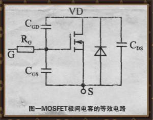 輸入電容Ciss、輸出電容Coss和反饋電容Crss與極間電容的關(guān)系可表示為: