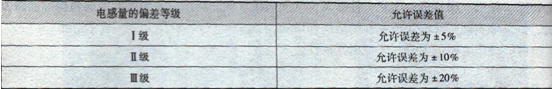 (3)允許誤差:電感量的實(shí)際值與標(biāo)稱之差除以標(biāo)稱值所得的百分?jǐn)?shù),,由感量差等級及允許誤差值如表2-7所示。