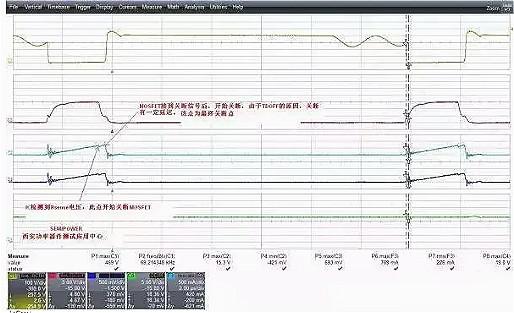 從圖中能夠看出,電流波形在快到電流尖峰時(shí),有個(gè)下跌,這個(gè)下跌點(diǎn)后又有一段的上升時(shí)間,這段時(shí)間其實(shí)質(zhì)就是IC在檢測(cè)到過(guò)流信號(hào)執(zhí)行關(guān)斷后,MOSFET自身也開(kāi)端執(zhí)行關(guān)斷,但是由于器件自身的關(guān)斷延遲,因而電流會(huì)有個(gè)二次上升平臺(tái),假如二次上升平臺(tái)過(guò)大,那么在變壓器余量設(shè)計(jì)缺乏時(shí),就極有可能產(chǎn)生磁飽和的一個(gè)電流沖擊或者電流超器件規(guī)格的一個(gè)失效。