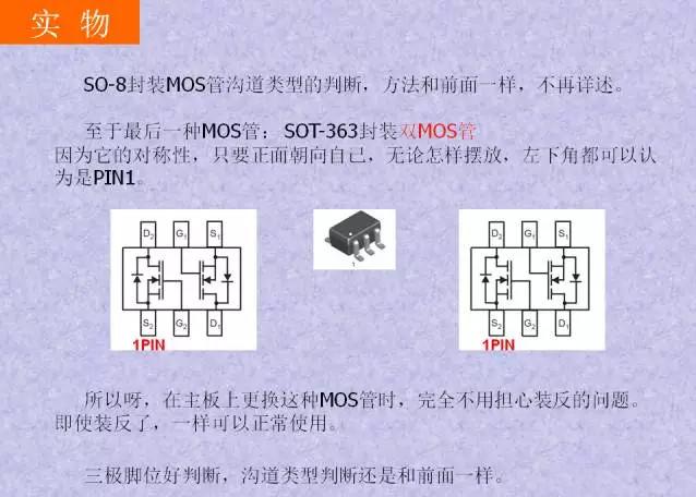 目前主板或顯卡上所采用的MOS管并不是太多,一般有10個左右,主要原因是大部分MOS管被整合到IC芯片中去了。由于MOS管主要是為配件提供穩(wěn)定的電壓,所以它一般使用在CPU、AGP插槽和內(nèi)存插槽附近。其中在CPU與AGP插槽附近各安排一組MOS管,而內(nèi)存插槽則共用了一組MOS管,MOS管一般是以兩個組成一組的形式出現(xiàn)主板上的。