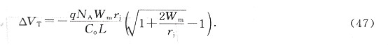閾值電壓漂移量AVT是由于耗盡區(qū)由長(zhǎng)方形LXWm變?yōu)樘菪?L+L‘) Wm/2,而使得電荷減少所形成的.△VT為(參考習(xí)題27):