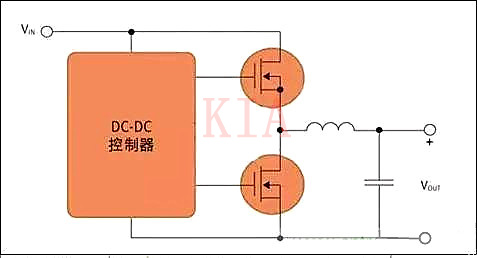 DC-DC電源中常用的基本降壓轉(zhuǎn)換器依靠兩個(gè)MOSFET來執(zhí)行開關(guān)功能(下圖),這些開關(guān)交替在電感里存儲(chǔ)能量,然后把能量開釋給負(fù)載。