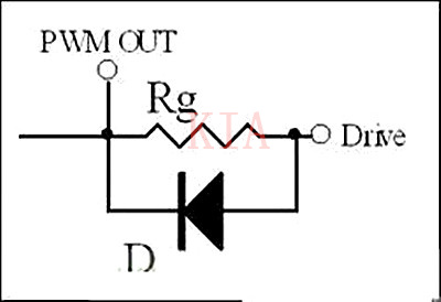 通常為了保證快速瀉放,在Rg上可以并聯(lián)一個(gè)二極管。當(dāng)瀉放電阻過小,由于走線電感的原因也會(huì)引起諧振(因此有些應(yīng)用中也會(huì)在這個(gè)二極管上串一個(gè)小電阻),但是由于二極管的反向電流不導(dǎo)通,此時(shí)Rg又參與反向諧振回路,因此可以抑制反向諧振的尖峰。
