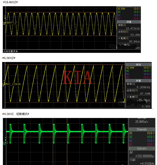 在輕載模式下,輸出電壓的紋波電壓會(huì)比較大,同時(shí)流過(guò)電容的交流電的頻率也比較離散,所以容易發(fā)生嘯叫事件。