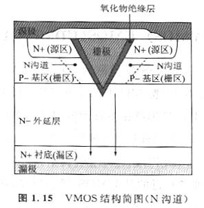 最先應(yīng)用的槽柵構(gòu)造的剖面外形與英文字母“v”很類似(圖1. 15),VMOS的最初稱號就是由此而來,它是“V-groove Vertical Metal Oxide Semiconduc-tor”的縮寫,曾經(jīng)簡稱為“VVMOS”,至今依然可以在一些公開的材料中見到。這種依據(jù)柵極(柵區(qū))的剖面外形停止的技術(shù)命名辦法也被沿用了下來,以后陸續(xù)呈現(xiàn)了UMOS、πMOS等