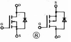 為防止MOSFET接電感負(fù)載時(shí),在截止瞬間產(chǎn)生感應(yīng)電壓與電源電壓之和擊穿MOSFET,一般功率MOSFET在漏極與源極之間內(nèi)接一個(gè)快速恢復(fù)二極管,如圖8所示。
