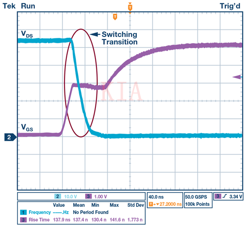 在切換期間,器件可能處于高電流和高電壓狀態(tài),這會產(chǎn)生功耗并轉(zhuǎn)化為熱量。因此,從一個狀態(tài)到另一個狀態(tài)的轉(zhuǎn)換需要很快,以盡可能縮短切換時間。為了實現(xiàn)這一點,需要高瞬變電流來使柵極電容快速充電和放電。