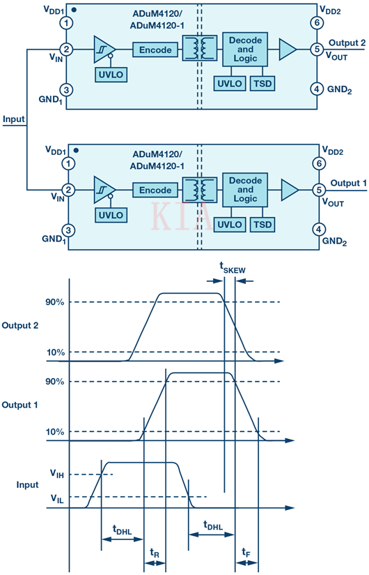 圖5.ADuM4120柵極驅(qū)動器和時序波形