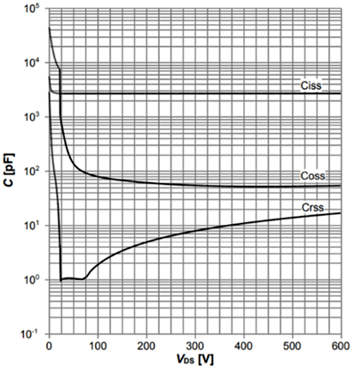 圖2:半橋CoolMOS Coss電壓變化曲線