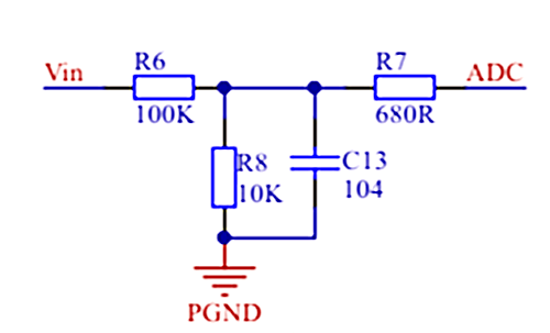 Vin=24V低壓檢測電路,將24V轉(zhuǎn)換到0-3V3之間,實(shí)測效果挺好的,電阻使用1%的精度。