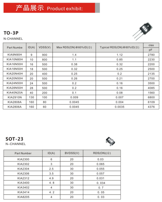 KIA半導(dǎo)體是國(guó)家級(jí)高新技術(shù)企業(yè)專注于功率半導(dǎo)體技術(shù)開發(fā),2007年在韓國(guó)浦項(xiàng)工科大學(xué)(NINT)內(nèi)擁有專業(yè)跨國(guó)合作的設(shè)計(jì)研發(fā)團(tuán)隊(duì)和8英寸VD-MOS晶圓廠。成功完成MOSFET產(chǎn)品的設(shè)計(jì)和生產(chǎn)定型,大幅度降低了產(chǎn)品的RDS(ON),并率先將該類型產(chǎn)品在中國(guó)市場(chǎng)推出,產(chǎn)品的相關(guān)測(cè)試數(shù)據(jù)均達(dá)到歐美同類產(chǎn)品,擁有更高的性價(jià)比。通過十幾年持之以恒、以品質(zhì)說話的理念在場(chǎng)效應(yīng)管(MOSFET)上已經(jīng)發(fā)展成為市場(chǎng)上擁有最齊全型號(hào)的生產(chǎn)廠家之一。