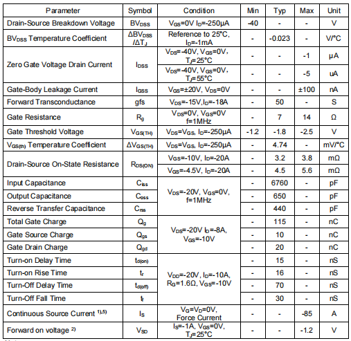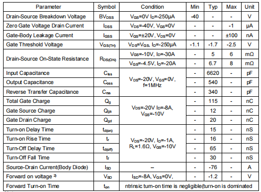 40v pmos管,P40v MOS管,KPX3404A特性:超低柵極電荷、100%EAS保證、綠色設(shè)備可用、出色的CdV/dt效應(yīng)下降、先進(jìn)的高單元密度溝槽。