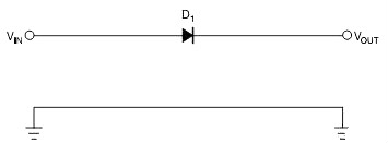 圖1 一只串聯(lián)二極管保護(hù)系統(tǒng)不受反向極性影響,二極管有0.7V的壓降