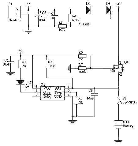 圖1 如圖1所示,使用了P溝道的內(nèi)置二極管的電路,此處二極管的主要作用是續(xù)流作用,電路是鋰電池充放電電路,當(dāng)外部電源斷開時采用Li電池進行內(nèi)部供電,即+5V電源斷開后Q1的G極為低電平,S極和D極導(dǎo)通,為系統(tǒng)供電。圖中D2和D3的一方面是降壓的作用,使5V降為4V(D2為鍺管壓降為0.2V,D3硅管壓降為0.7V)。