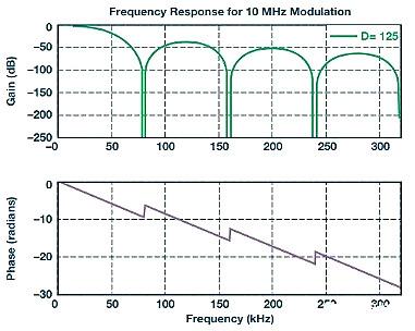 改善隔離系統(tǒng)線性度的一種常見(jiàn)方法是將ADC移至隔離柵的另一側(cè)并隔離數(shù)字信號(hào)。在許多情況下,這需要將串聯(lián)ADC與數(shù)字信號(hào)隔離器結(jié)合使用。由于對(duì)電機(jī)電流反饋存在高頻的特殊要求,以及需要對(duì)驅(qū)動(dòng)保護(hù)進(jìn)行快速響應(yīng),因此可選擇Σ-Δ型ADC。Σ-Δ型ADC配有一個(gè)可將模擬信號(hào)轉(zhuǎn)換為一位碼流的線性調(diào)制器,其后配備可將信號(hào)重構(gòu)為高分辨率數(shù)字字的數(shù)字濾波器。此方法的好處是可使用兩種不同的數(shù)字濾波器:較慢的用于高保真反饋,另一個(gè)低保真快速濾波器用于保護(hù)逆變器。在圖2中,繞組分流器用于測(cè)量電機(jī)繞組電流,隔離式ADC用于在隔離柵上傳輸10 MHz數(shù)據(jù)流。Sinc濾波器可將高分辨率電流數(shù)據(jù)提交給電機(jī)控制算法,該算法會(huì)計(jì)算施加所需逆變器電壓需要的逆變器占空比。另一個(gè)低分辨率濾波器可檢測(cè)電流過(guò)載,并在出現(xiàn)故障時(shí)將跳變信號(hào)發(fā)送至PWM調(diào)制器。Sinc濾波器頻率響應(yīng)曲線解釋說(shuō)明了合適的參數(shù)選擇如何能夠使濾波器抑制電流采樣中的PWM開(kāi)關(guān)紋波。