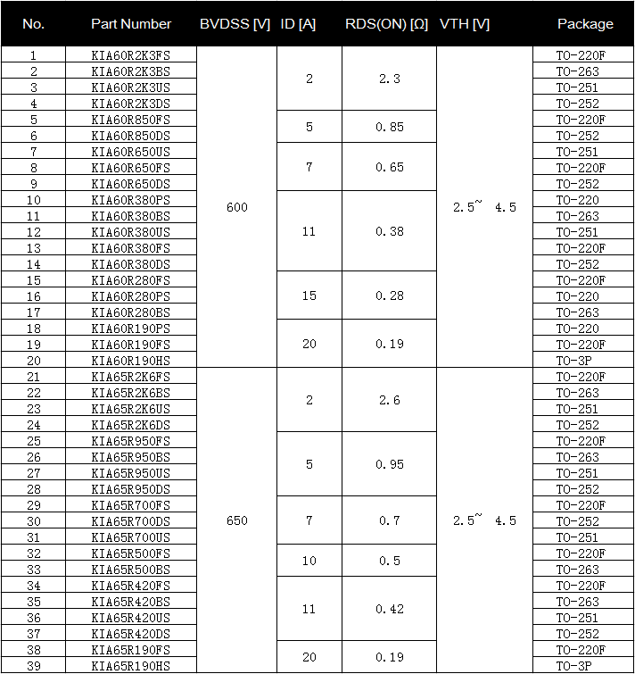 KIA半導體推出超結場效應管(Super Junction MOSFET)