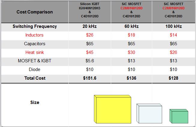 但是應(yīng)用了SiC MOSFET 的系統(tǒng)設(shè)備整體價(jià)格低于應(yīng)用Si