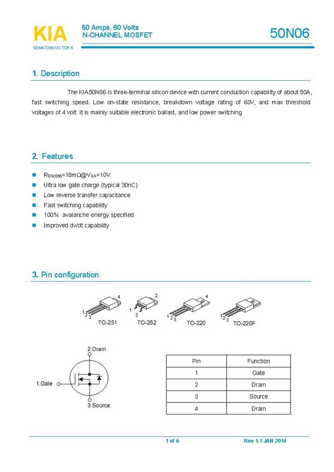 參數(shù): ID(A): 50 BVDSS(V): 60 RDS(ON): 0.23 Qg(nC): 40 Package: TO-220、TO-220F、TO-252
