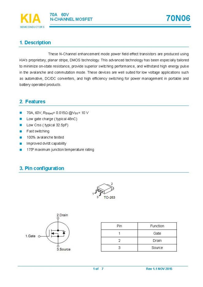 參數(shù): ID(A): 70 BVDSS(V): 60 RDS(ON): 0.015 Qg(nC): 40 Package: TO-263