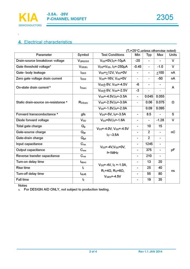 參數(shù): ID(A): -3.5 BVDSS(V): -20 RDS(ON): 0.09 Qg(nC): 15 Package: SOT-23