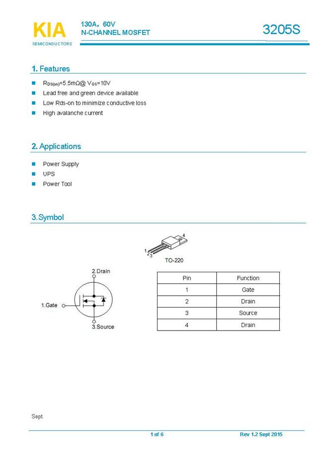 參數: ID(A): 130 BVDSS(V): 60 RDS(ON): 0.0055 Qg(nC): 66 Package: TO-220