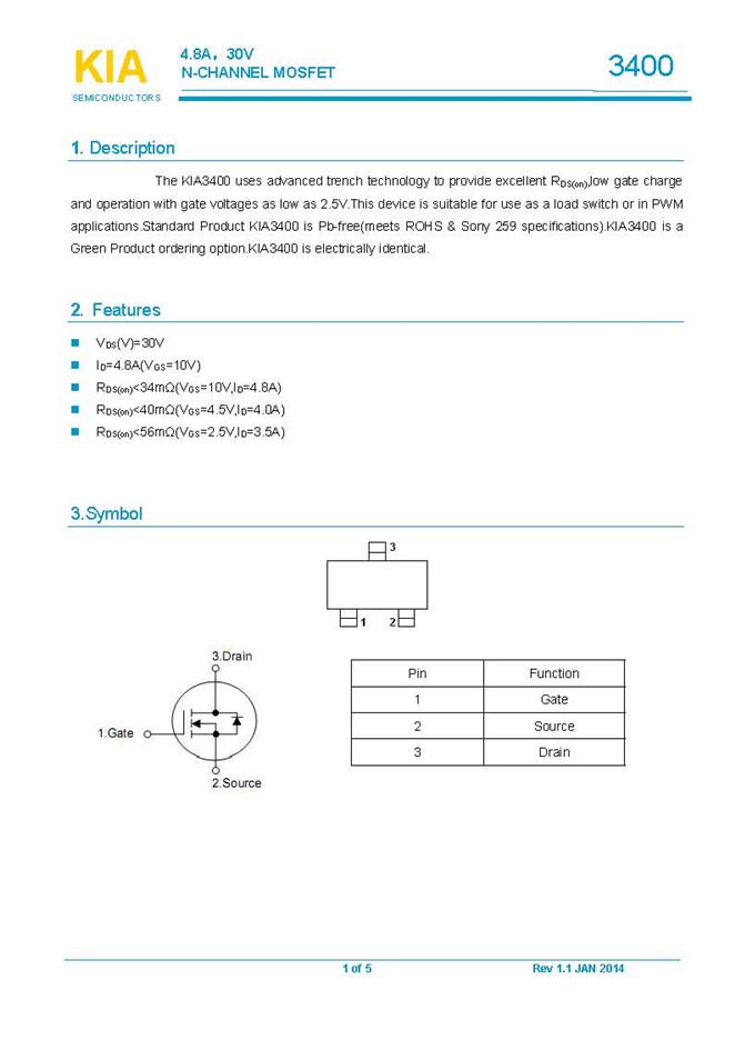 參數(shù): ID(A): 4.8 BVDSS(V): 30 RDS(ON): 0.04 Qg(nC): 12 Package: SOT-23