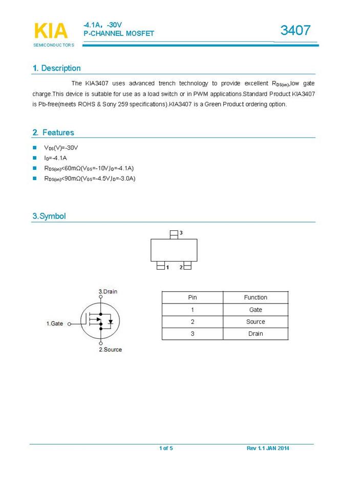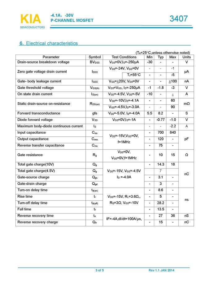 參數(shù): ID(A): -4.1 BVDSS(V): -30 RDS(ON): 0.06 Qg(nC): 18 Package: SOT-23