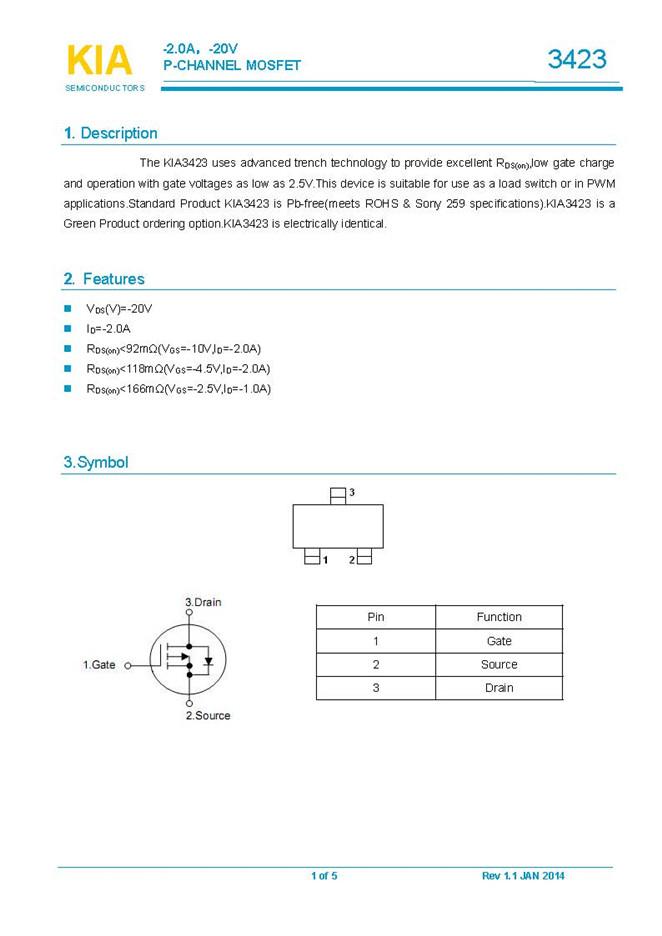 參數(shù): ID(A): -2 BVDSS(V): -20 RDS(ON): 0.092 Qg(nC): 6.6 Package: SOT-23