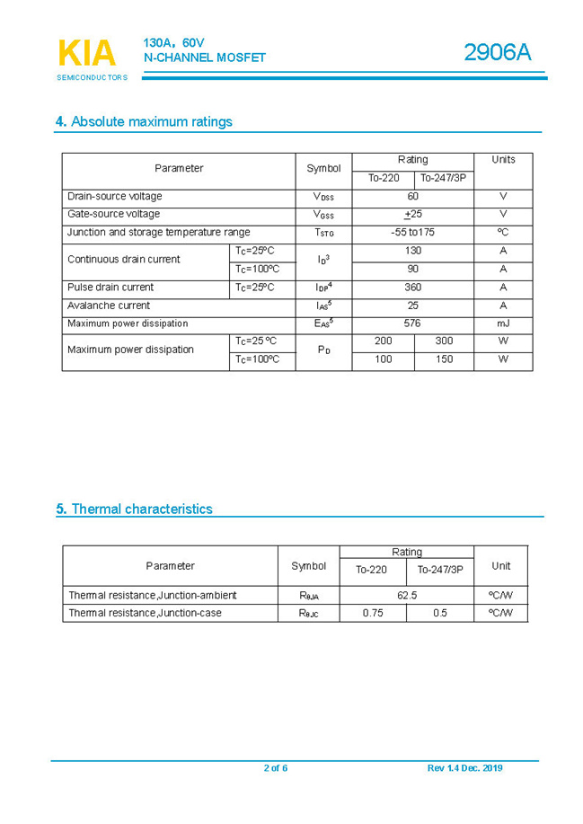 參數(shù): ID(A): 130 BVDSS(V): 60 RDS(ON): 5.5mΩ Qg(nC): 66.34 Package: TO-220.TO-3P.TO-247