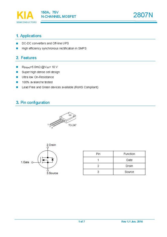 參數(shù): ID(A): 150    BVDSS(V): 75    RDS(ON): 0.005    Qg(nC): 145    Package: TO-247