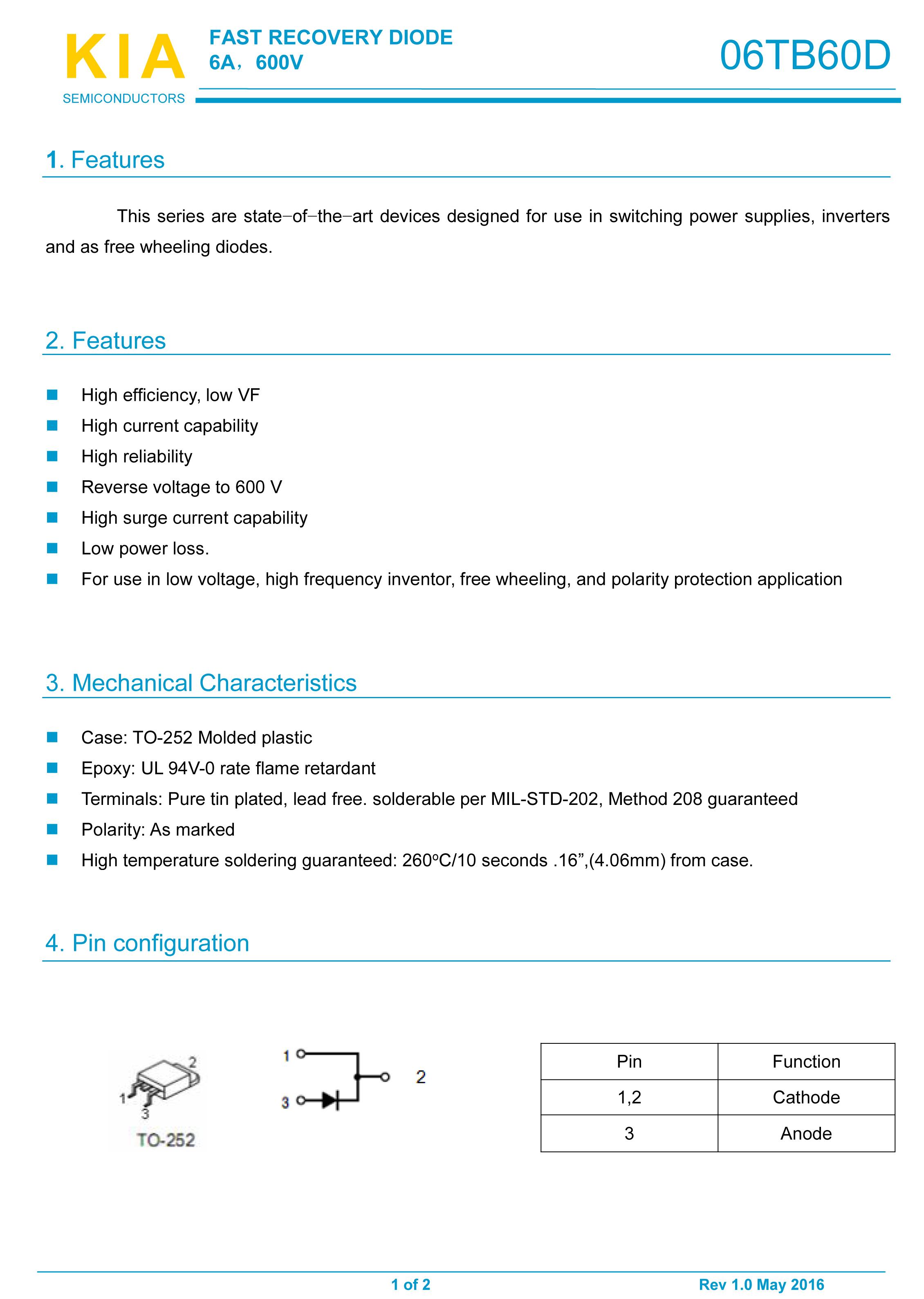 參數(shù): VR(V): 600V IF(A): 6A Trr(ns): 25NS Package: TO-252