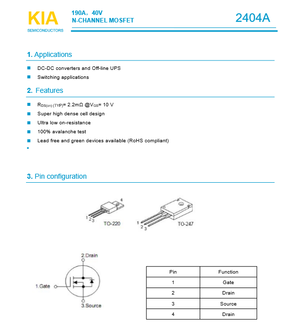 參數(shù): ID(A): 190 BVDSS(V): 40 RDS(ON): 0.0022 Qg(nC): 120 Package: TO-220