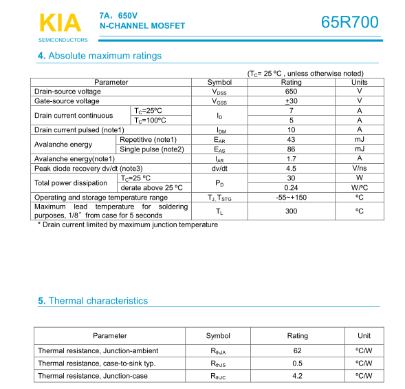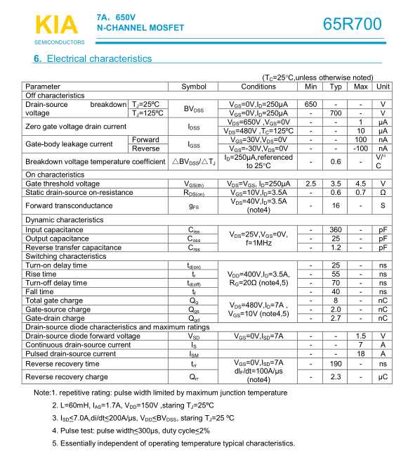 參數(shù): ID(A): 7 BVDSS(V): 650 RDS(ON): 0.6 Qg(nC): 8 Package: TO-251、252、220F