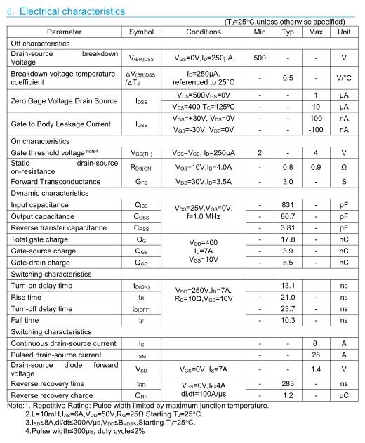 參數(shù): ID(A): 8 BVDSS(V): 500 RDS(ON): 0.9 Qg(nC): 17.8 Package: TO-252