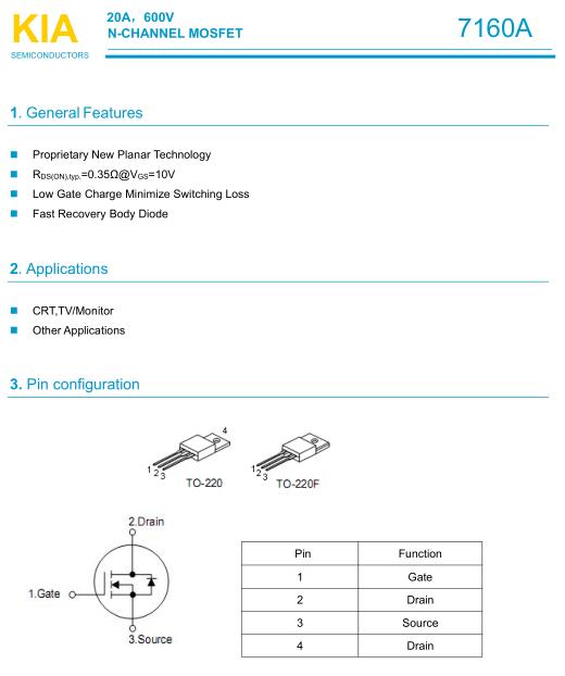 參數(shù): ID(A): 20 BVDSS(V): 600 RDS(ON): 0.19 Package: TO-220F
