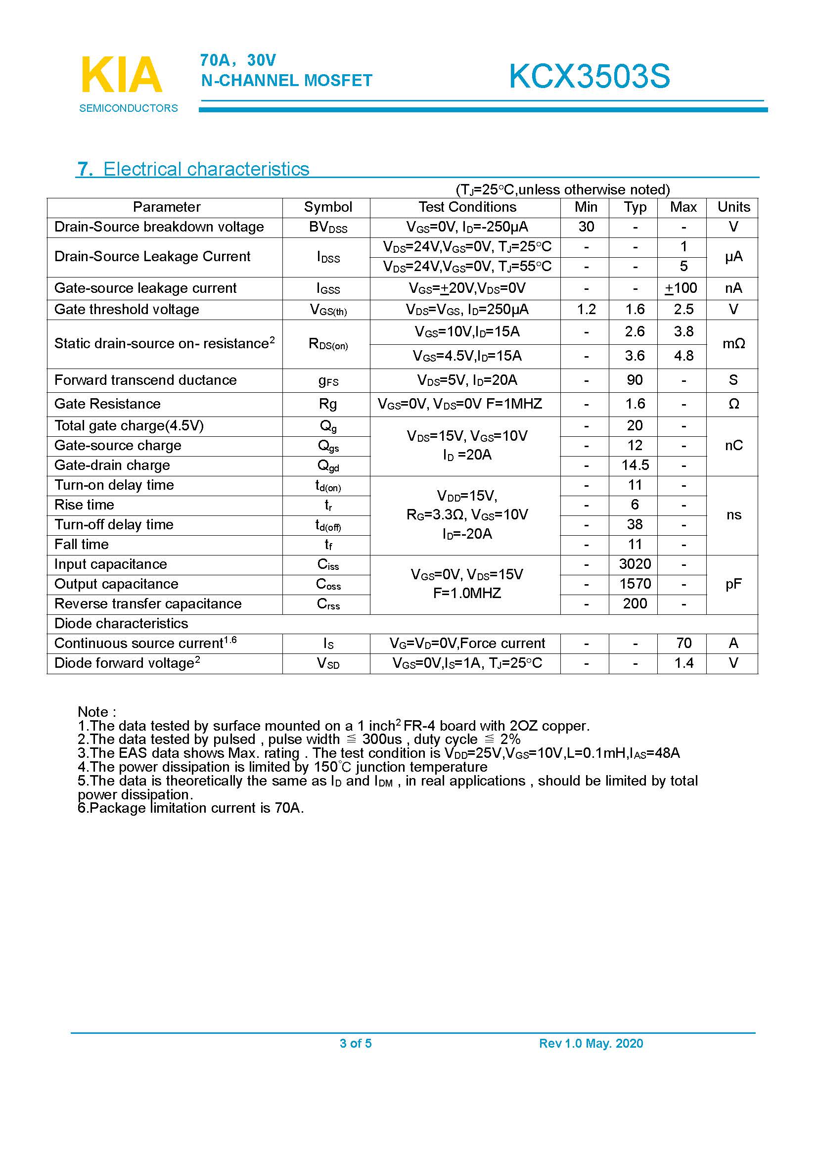 參數: ID(A): 70 BVDSS(V): 30 RDS(ON): 2.6 Qg(nC): 20 Package: DFN5*6