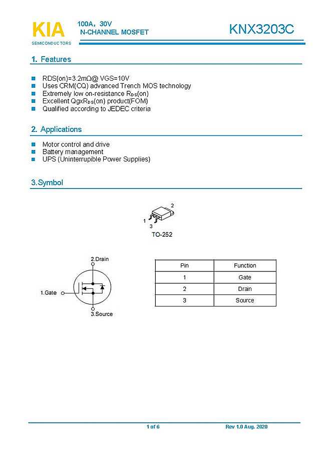參數(shù): ID(A): 100 BVDSS(V): 30 RDS(ON): 3.2 Qg(nC): 68 Package: TO-252