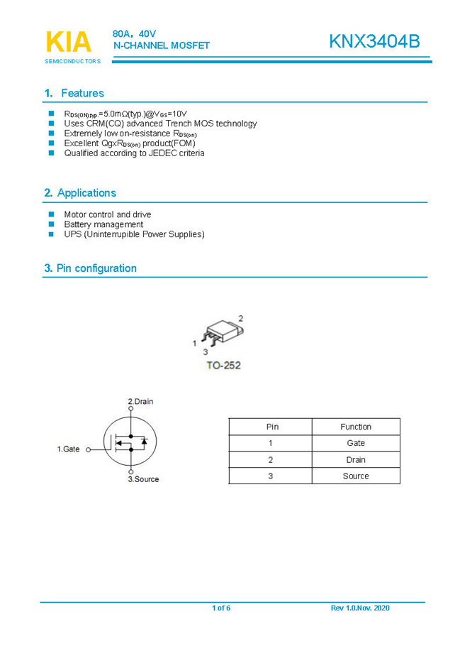 參數(shù): ID(A): 80 BVDSS(V): 40 RDS(ON): 5 Qg(nC): 47.5 Package: TO-252