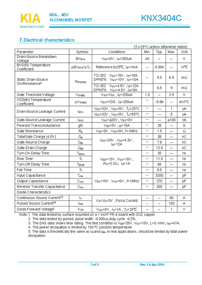 參數(shù): ID(A): 80 BVDSS(V): 40 RDS(ON): 5 Qg(nC): 28 Package: DFN5*6.TO-252