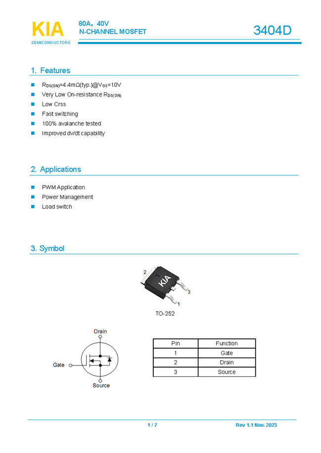 參數(shù): ID(A): 80 BVDSS(V): 40 RDS(ON): 4.4 Qg(nC): 58 Package: TO-252