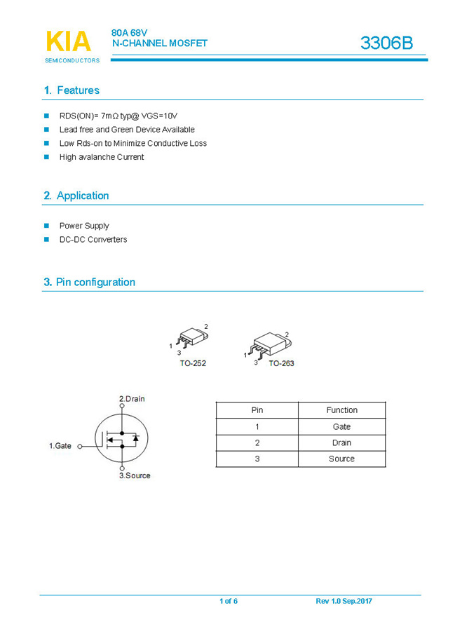 參數(shù): ID(A): 80 BVDSS(V): 68 RDS(ON): 7mΩ Qg(nC): 104 Package: TO-252/TO-263
