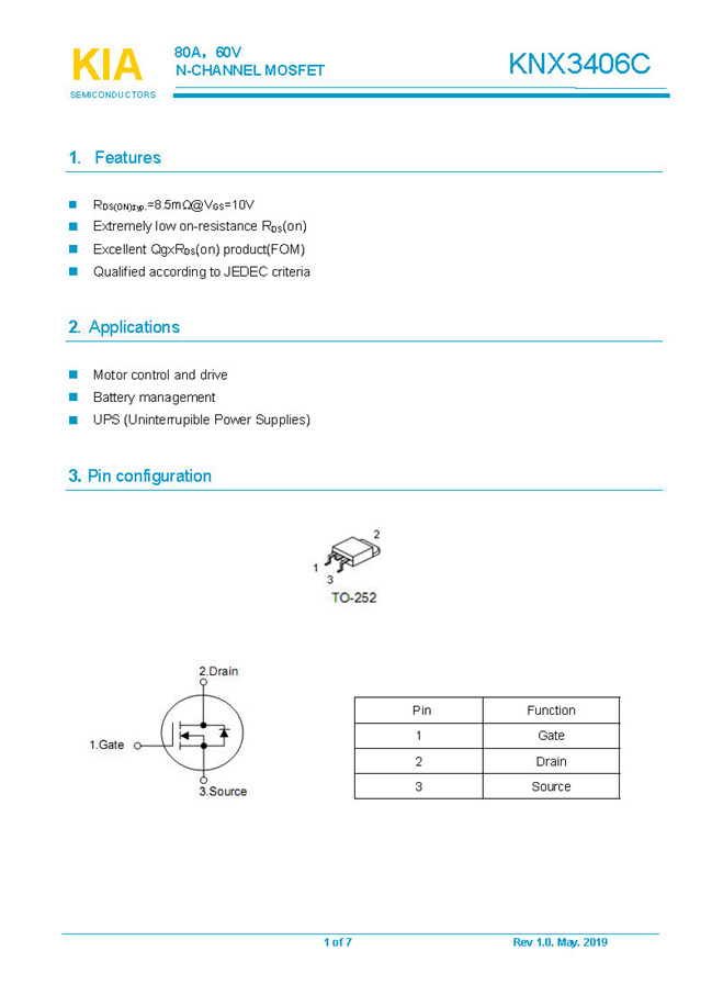 參數(shù): ID(A): 80 BVDSS(V): 60 RDS(ON): 8.5mΩ Qg(nC): 45 Package: TO-252