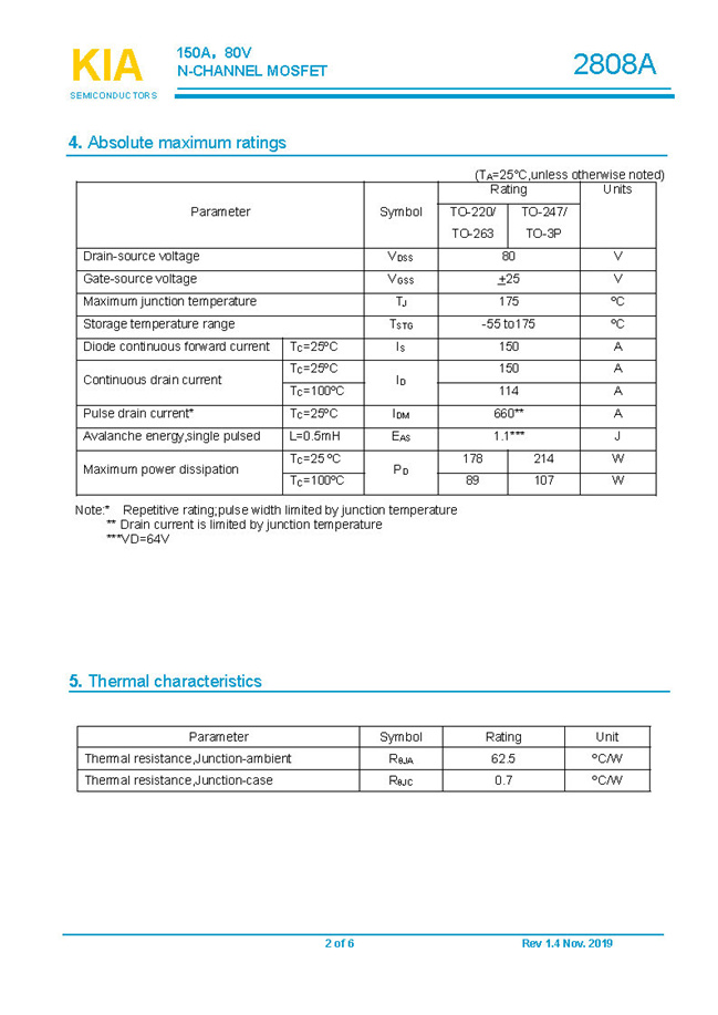 參數(shù): ID(A): 150 BVDSS(V): 80 RDS(ON): 4.0mΩ Qg(nC): 152 Package: TO-220.263.247.3P