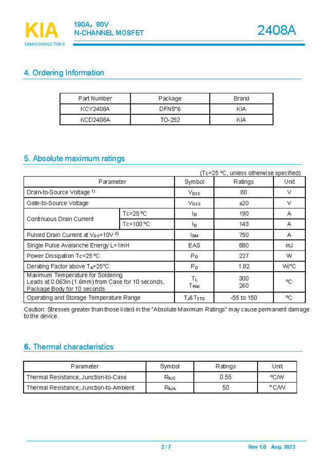 參數(shù): ID(A): 190 BVDSS(V): 80 RDS(ON): 3mΩ Qg(nC): 105 Package: TO-252.DFN5*6