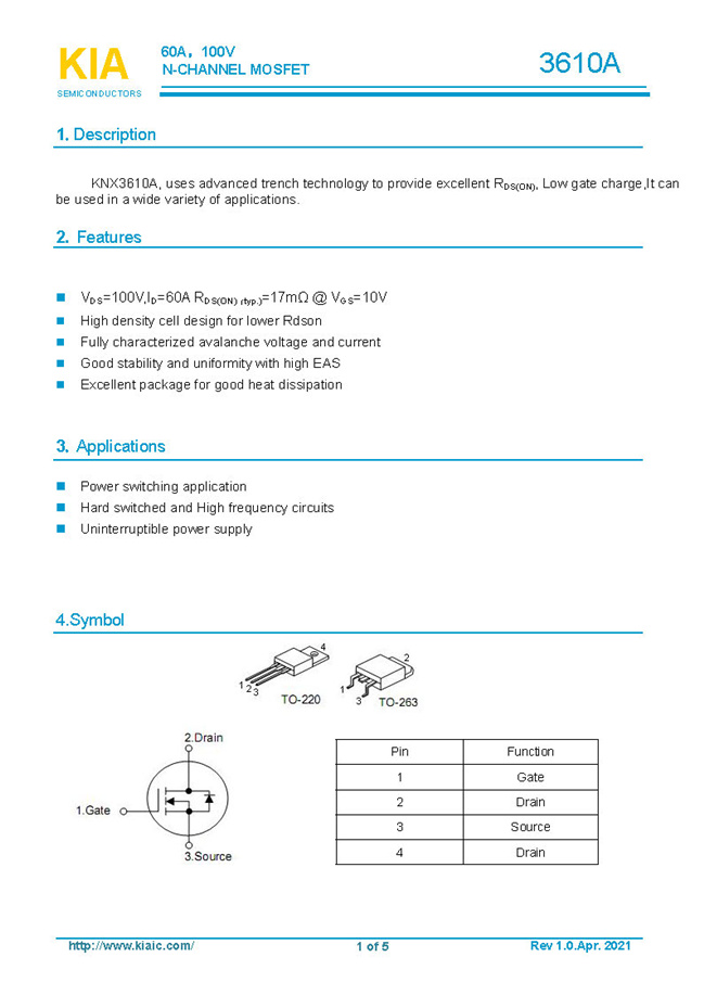 參數(shù): ID(A): 60 BVDSS(V): 100 RDS(ON): 17mΩ Qg(nC): 82 Package: TO-220.TO-263