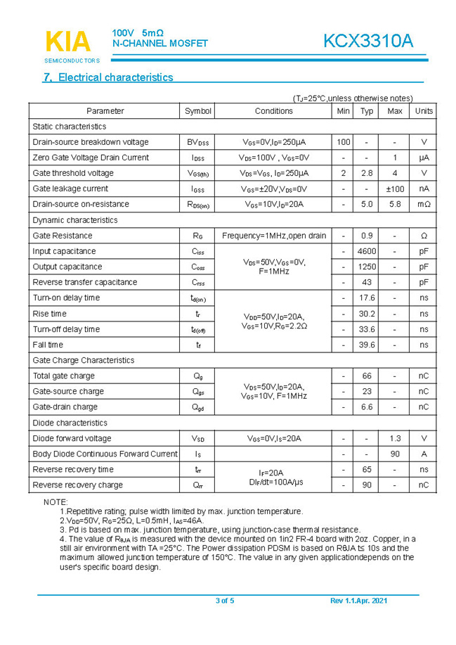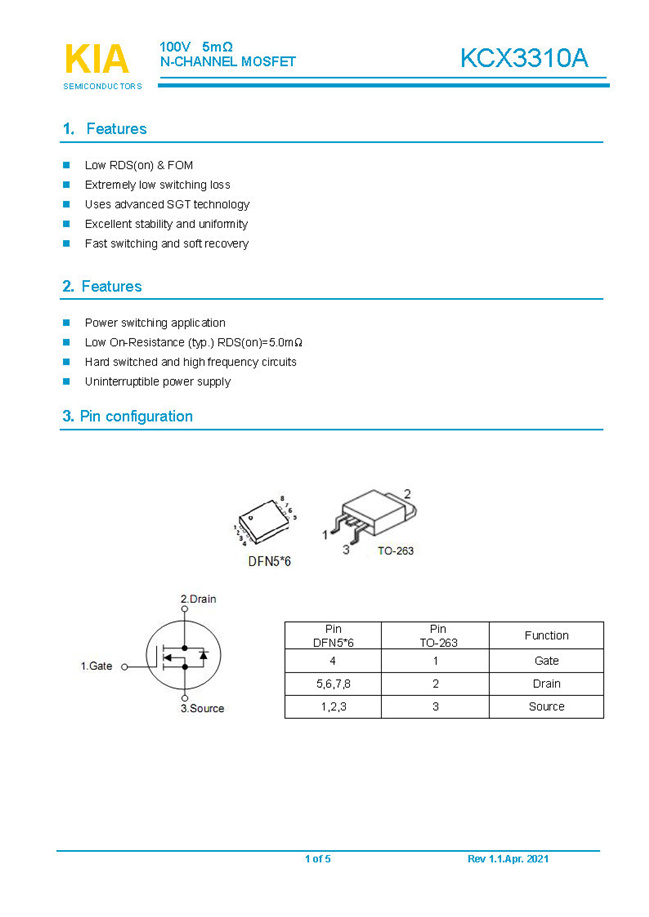 參數(shù): ID(A): 90/85 BVDSS(V): 100 RDS(ON): 5mΩ Qg(nC): 66 Package: DFN5*6 TO-263