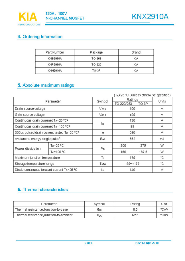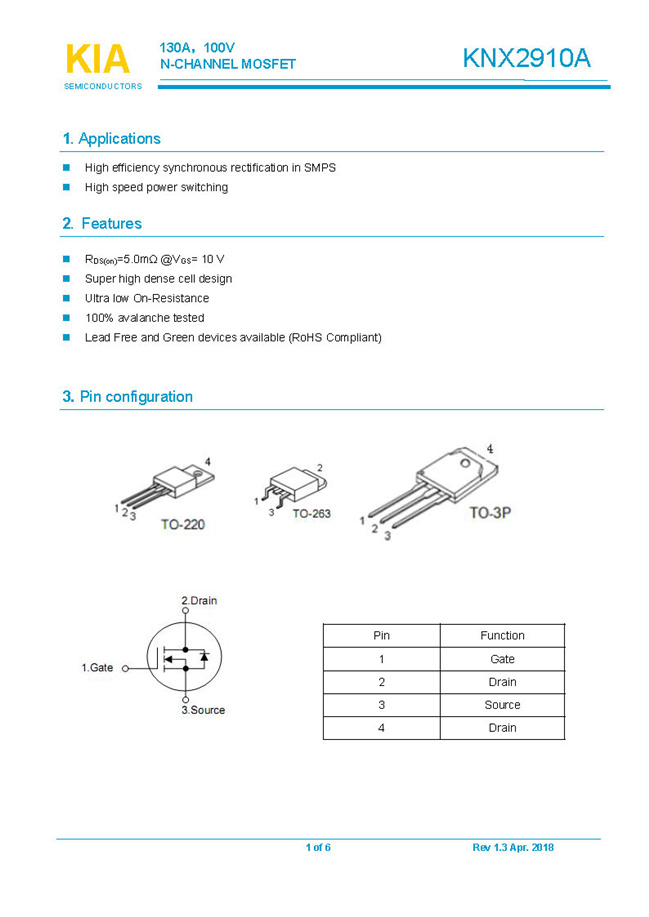 參數(shù): ID(A): 130 BVDSS(V): 100 RDS(ON): 5mΩ Qg(nC): 130 Package: TO-220.TO-263.TO-3P