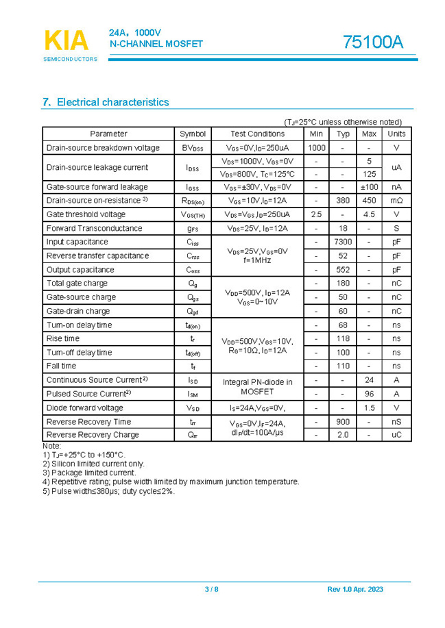 參數(shù): ID(A): 24 BVDSS(V): 1000 RDS(ON): 380mΩ Qg(nC): 180 Package: TO-264